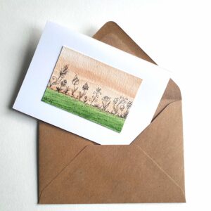 Diese handgemalte Grußkarte fängt die Magie der afrikanischen Savanne ein – warm, zeitlos und voller Ruhe.